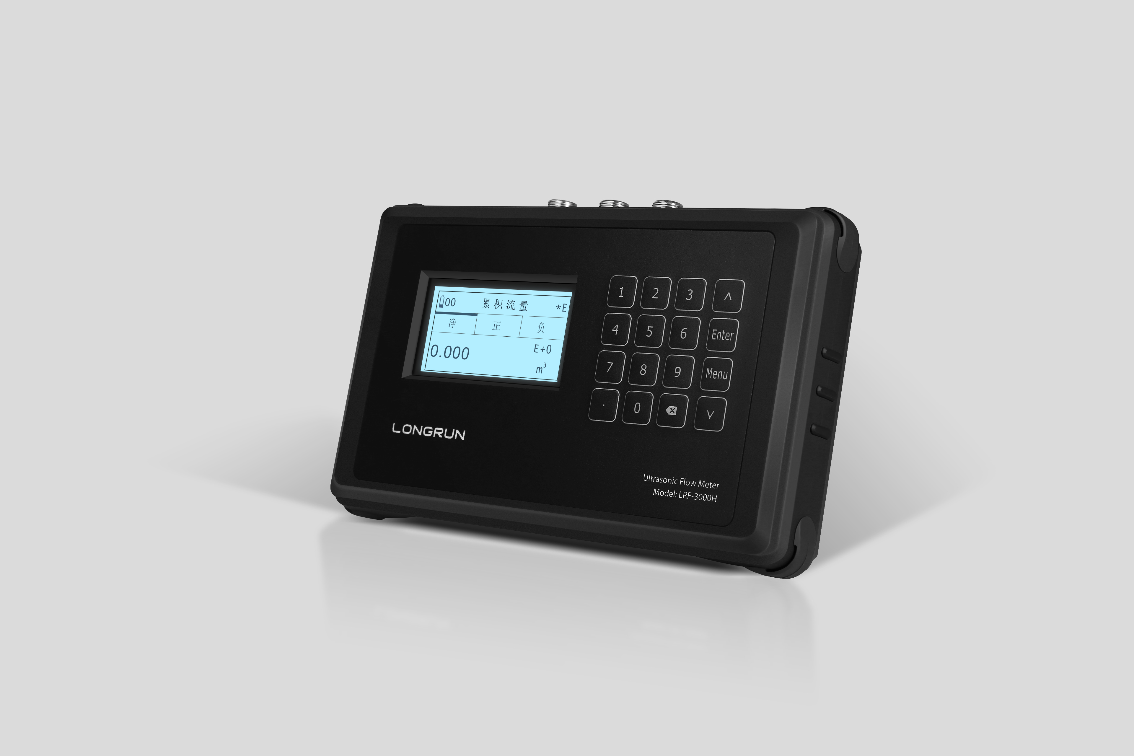 以型号为LRF-30000P便携式超声波流量计为例,首先通电进入主界面。(因为LRF-30000P便携式超声波流量计有自己的电源,其他型号需要连接电源后安装。)