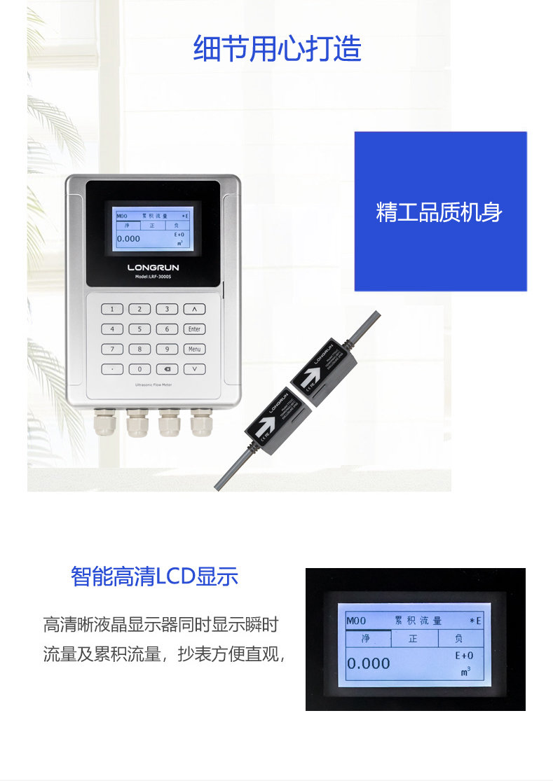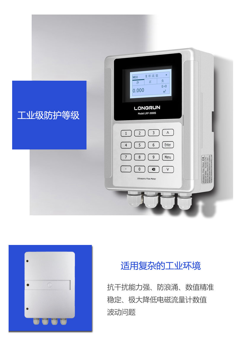 LRF-3000SW是一款固定壁挂式超声波流量计,采用的是自主研发的TGA时差式的测量技术。TGA测量技术相比国内其他家普通的TDC算法,是一种更高速、更高精度测量过程时间的算法。
